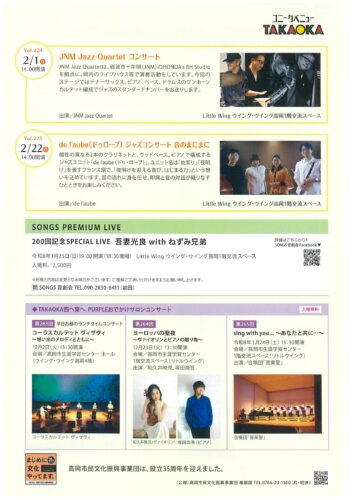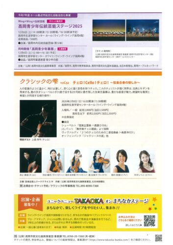 市内中心部で開催しているユニークベニューTAKAOKA オン まちなかステージの情報はもちろんのこと、各文化施設のイベント情報を中心に発信しています。