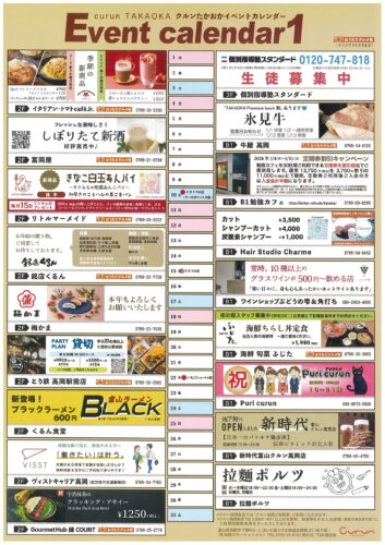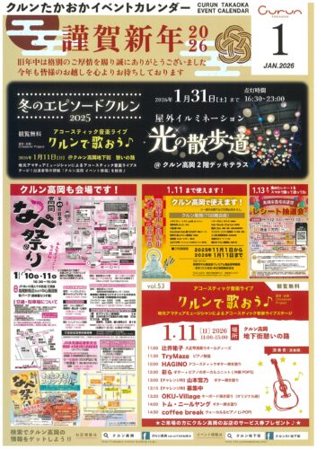 クルン高岡の2026年(令和8年)1月のイベントカレンダーをアップします。
