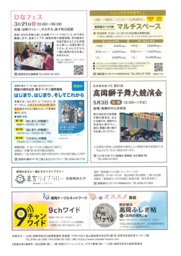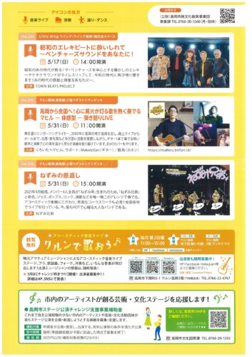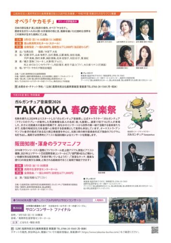 市内中心部で開催しているユニークベニューTAKAOKA オン まちなかステージの情報はもちろんのこと、各文化施設のイベント情報を中心に発信しています。