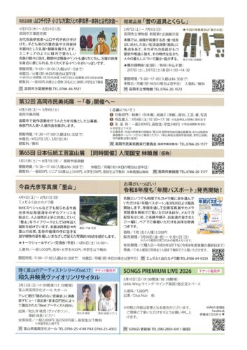 高岡発イベント情報紙”iku・cha”Vol.27(2026年春号)は、高岡市役所、各文化施設(高岡市美術館、高岡市立博物館、高岡市生涯学習センター、富山県高岡文化ホールなど)、御旅屋セリオ、クルン高岡、山町ヴァレーなど高岡市内各所で配布されています。