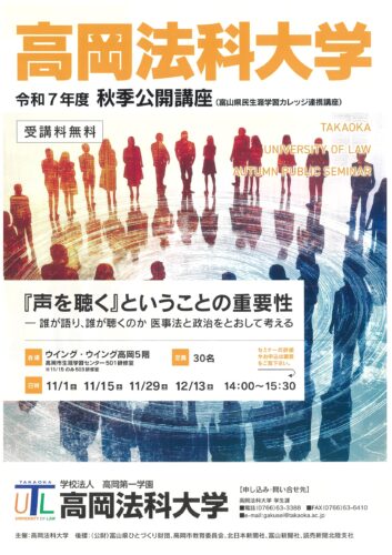 高岡法科大学 令和7年秋季公開講座 『声を聴く』ということの重要性(全4回) | |