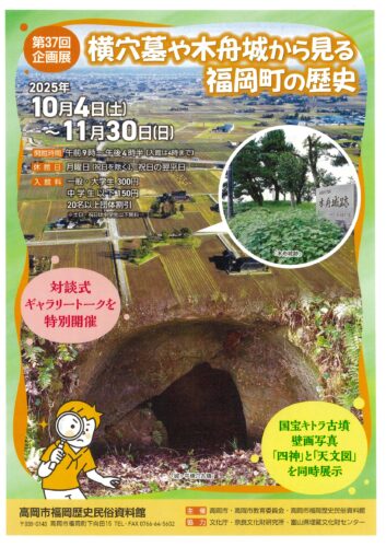 2025年(令和7年)10月4日(土)~11月30日(日)の間、第37回企画展『横穴墓や木舟城から見る福岡町の歴史』が、高岡市福岡歴史民俗資料館で開催されています。