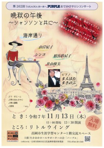 | 第262回TAKAOKA 西へ東へ 。PURPLEおでかけサロンコンサート |
