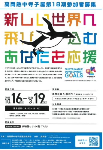 2025年(令和7年)10月16日(木)から2026年(令和8年)3月19日(木)の毎月第3木曜日(原則)に、第17期 高岡熱中寺子屋(全6回)が開催されます。