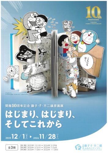 2025年(令和7年)12月1日(月)から2026年(令和8年)11月28日(土)の間、開館10周年記念藤子・F・不二雄 原画展はじまり、はじまり、そしてこれからが、高岡市藤子・F・不二雄ふるさとギャラリーで開催されます。ぜひお越しください!!