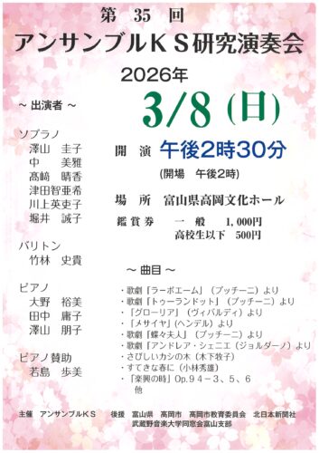 第35回アンサンブルKS研究演奏会[更新日] 2026-02-06